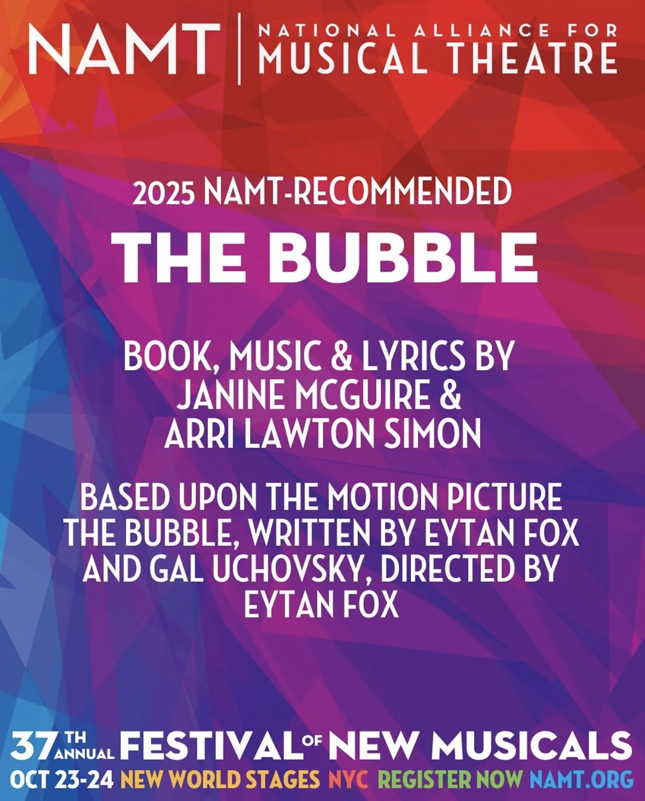 Thank you to NAMT (National Alliance for Musical Theatre) for naming The Bubble a 2025 NAMT-Recommended Musical. We’re honored to be included on this year’s list!
